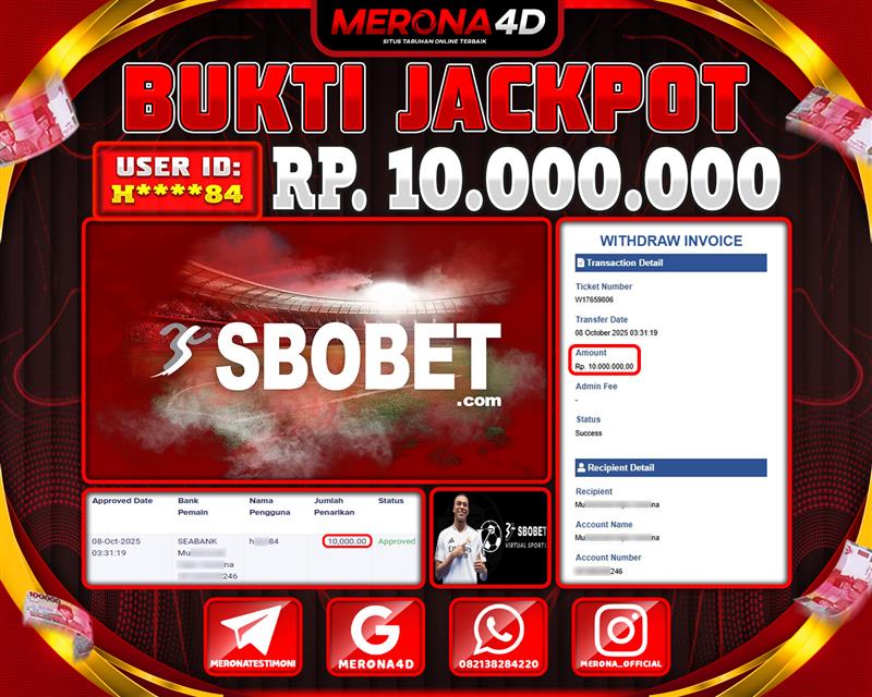 Selamat Kepada Member MERONA4D H*****84 Telah Jackpot Di SBOVIRTUALGAMES