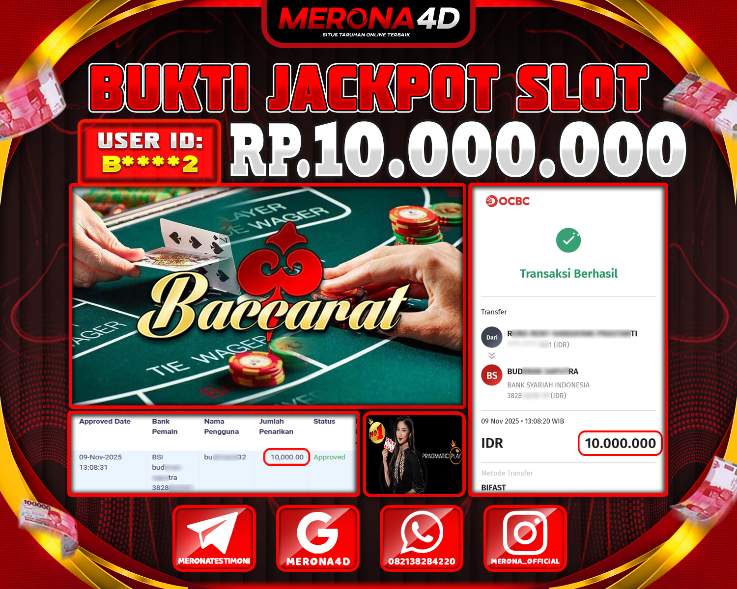 Selamat Kepada Member MERONA4D Bβ­‘οΏ½***οΏ½β­‘2 Telah Jackpot Di BACCARAT