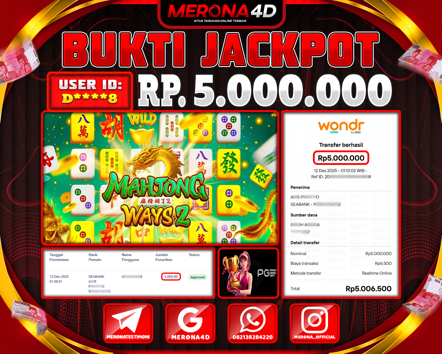 Selamat Kepada Member MERONA4D D****8 Telah Jackpot Di MAHJONG WAYS 2