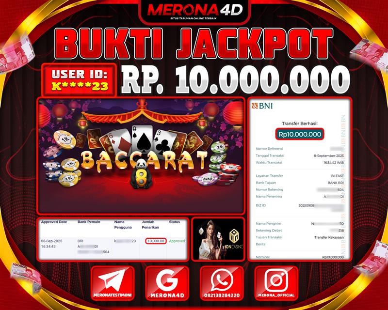 Selamat Kepada Member MERONA4D K*****23 Telah Jackpot Di BACCARAT