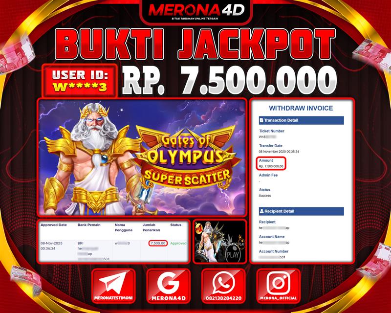 Selamat Kepada Member MERONA4D W*****3 Telah Jackpot Di GATES OF OLYMPUS SUPER SCATTER