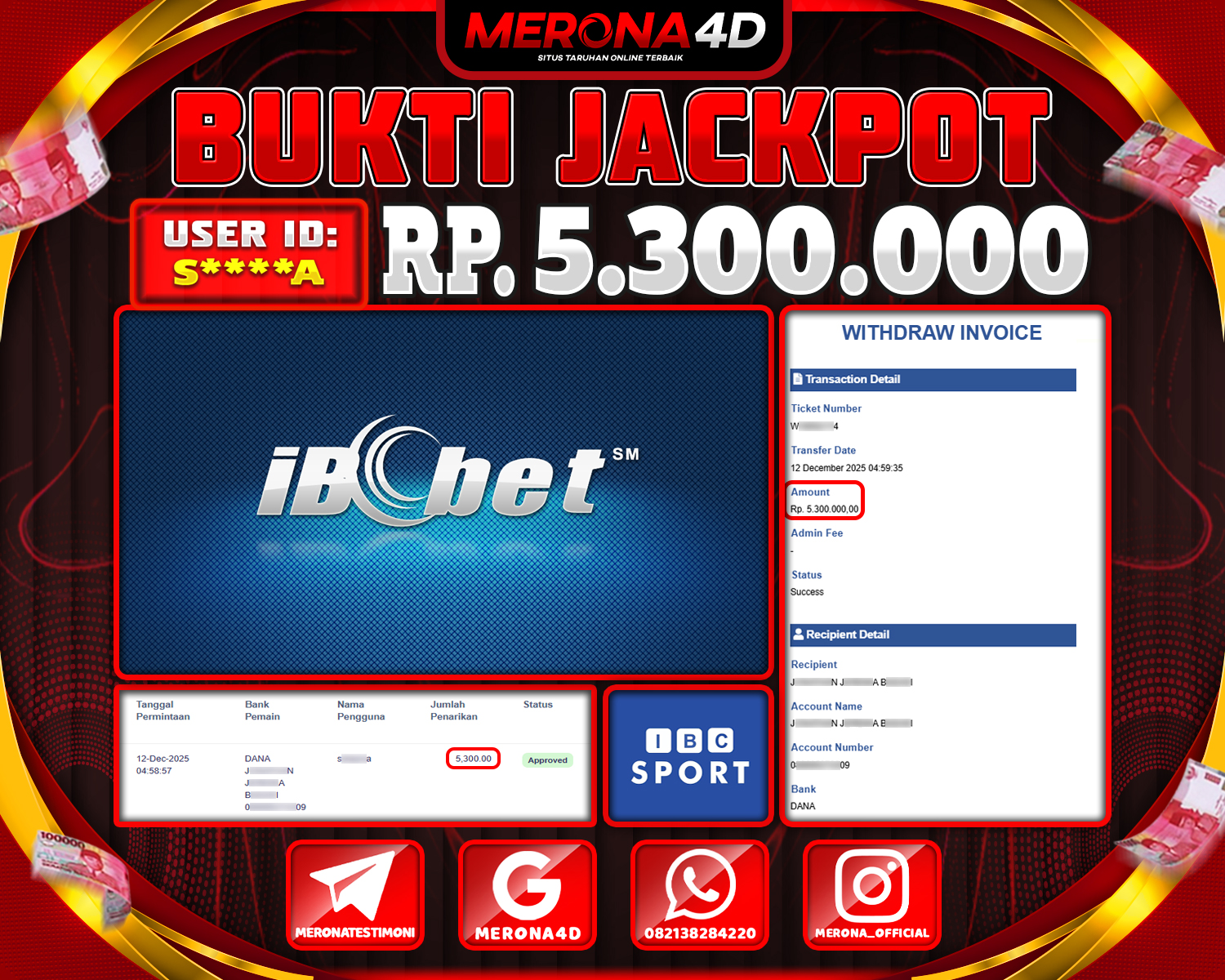 Selamat Kepada Member MERONA4D S****A Telah Jackpot Di IBC SPORT
