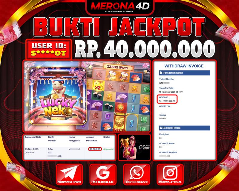Selamat Kepada Member MERONA4D S*****OT Telah Jackpot Di LUCKY NEKO