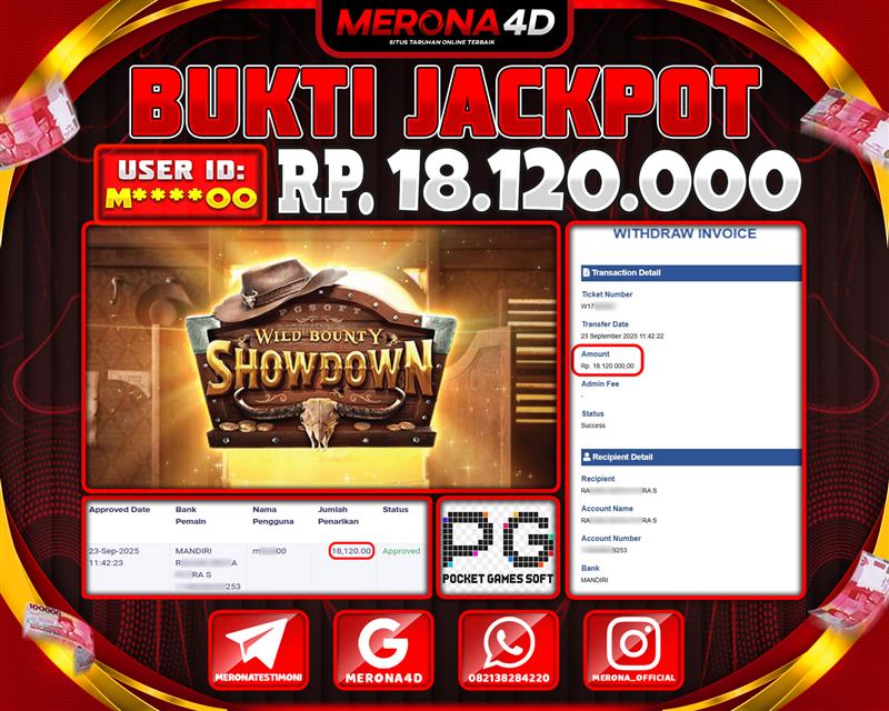 Selamat Kepada Member MERONA4D M*****00 Telah Jackpot Di WILD BOUNTY SHOWDOWN