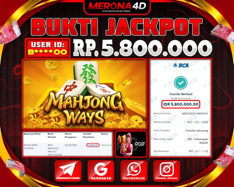 Selamat Kepada Member MERONA4D G****M Telah Jackpot Di MAHJONG WAYS