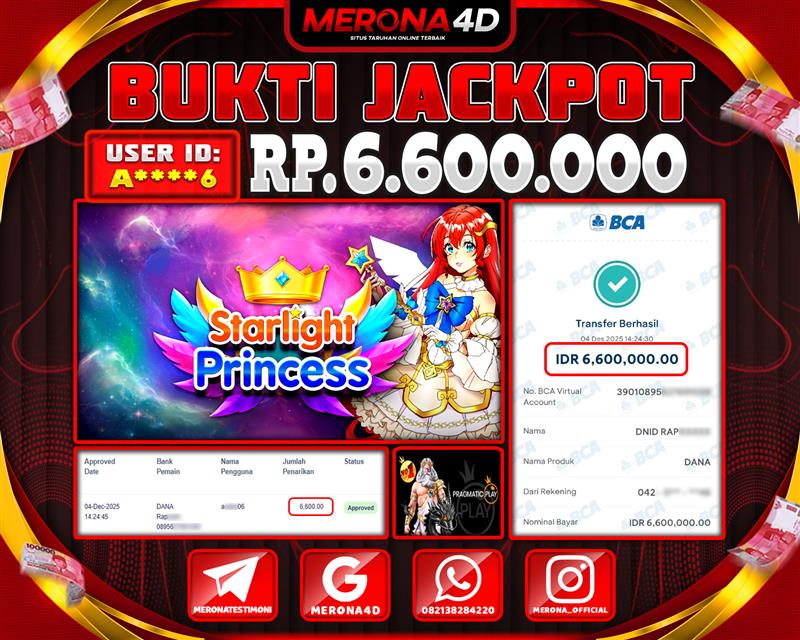 Selamat Kepada Member MERONA4D A*****6 Telah Jackpot Di STARLIGHT PRINCESS