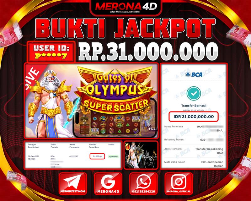 Selamat Kepada Member MERONA4D Y****A Telah Jackpot Di GATES OF OLYMPUS SUPER SCATTER