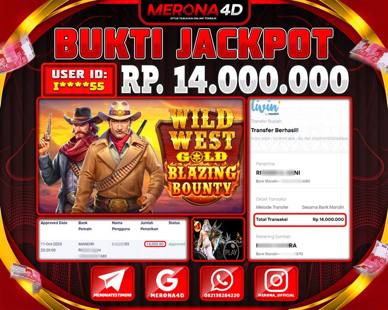 Selamat Kepada Member MERONA4D I*****55 Telah Jackpot Di WILD WEST GOLD BLAZING BOUNTY