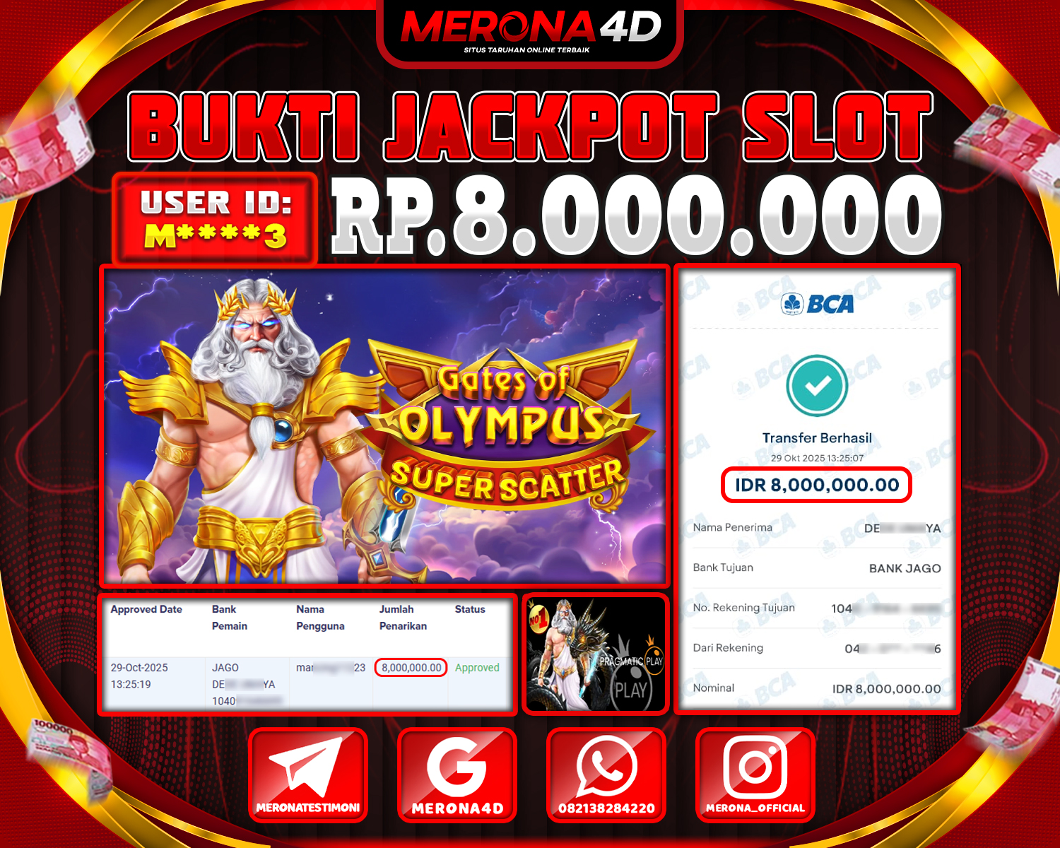 Selamat Kepada Member MERONA4D H****O Telah Jackpot Di GATES OF OLYMPUS SUPER SCATTER