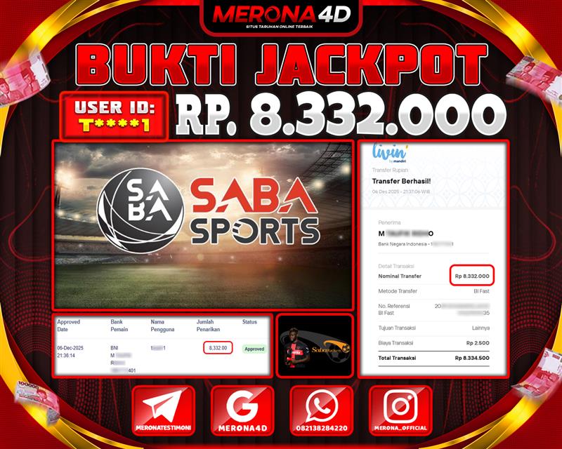 Selamat Kepada Member MERONA4D T****1 Telah Jackpot Di SABA SPORTS