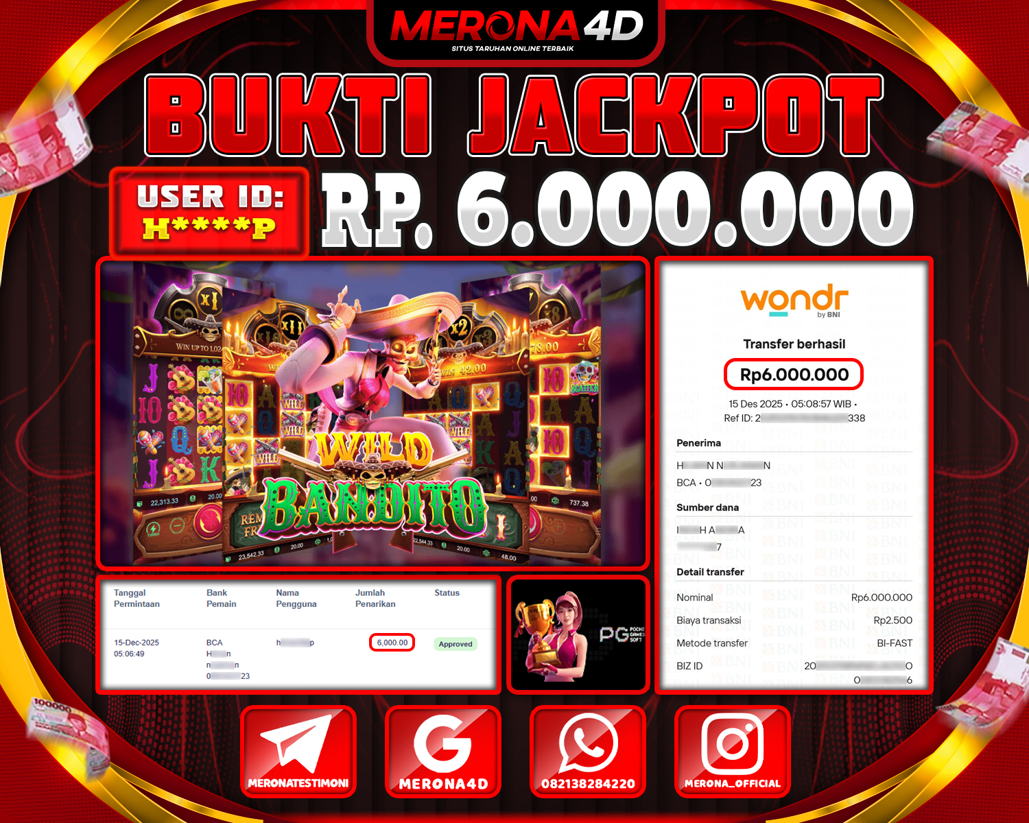 Selamat Kepada Member MERONA4D H****P Telah Jackpot Di WILD BANDITO