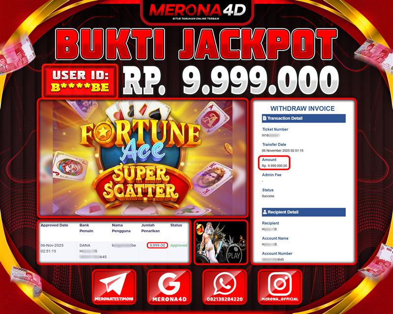 Selamat Kepada Member MERONA4D B*****BE Telah Jackpot Di FORTUNE ACE SUPER SCATTER