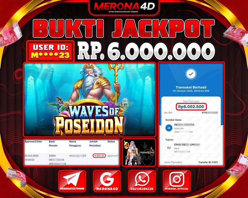 Selamat Kepada Member MERONA4D M****3 Telah Jackpot Di WAVES OF POSEIDON