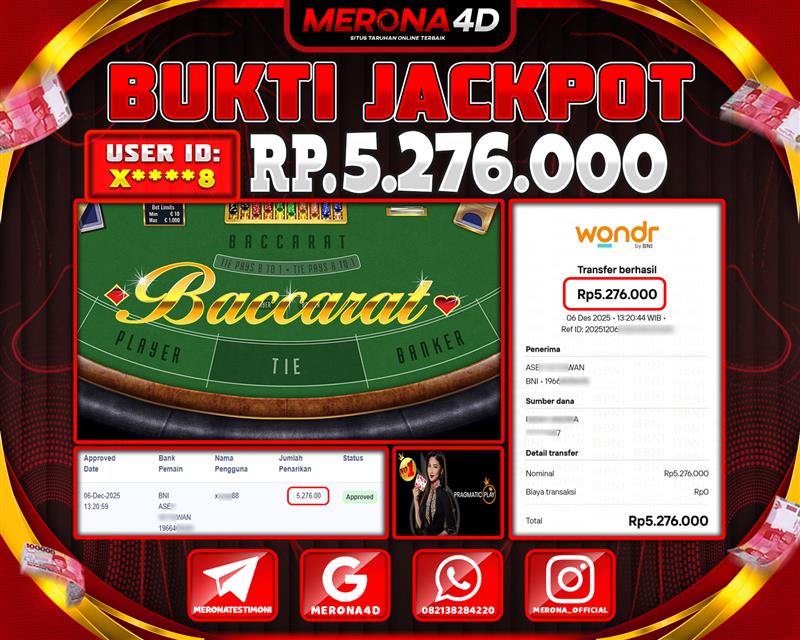 Selamat Kepada Member MERONA4D X*****8 Telah Jackpot Di BACCARAT