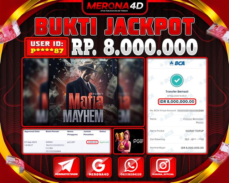 Selamat Kepada Member MERONA4D P*****87 Telah Jackpot Di MAFIA MAY