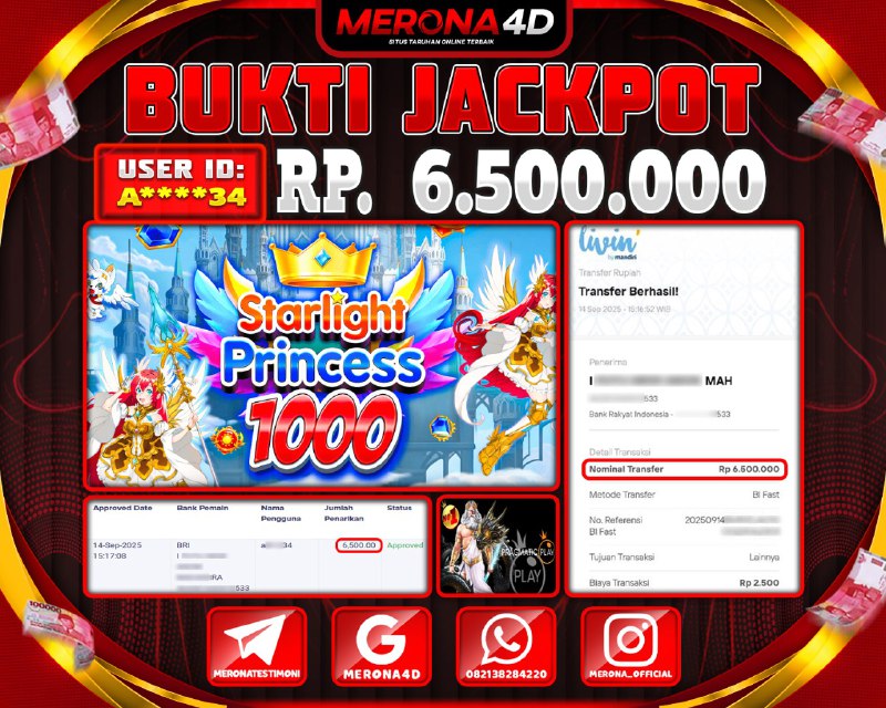Selamat Kepada Member MERONA4D A*****4 Telah Jackpot Di STARLIGHT PRINCESS 1000