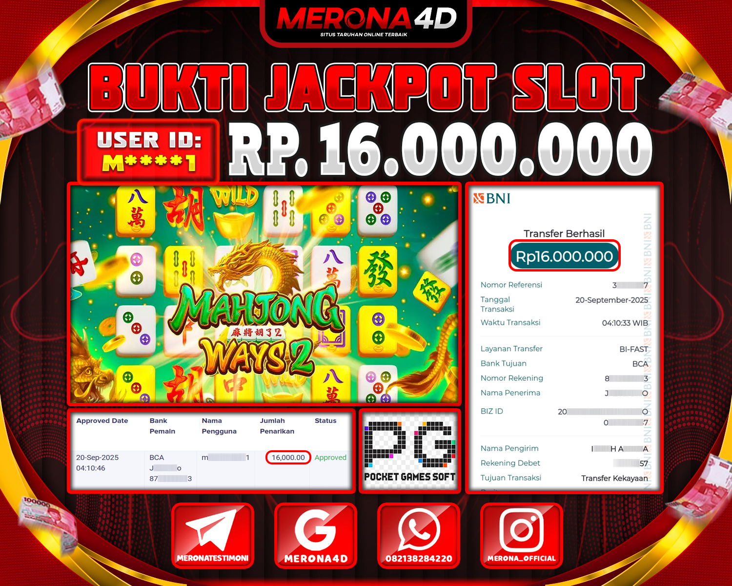 Selamat Kepada Member MERONA4D M****1 Telah Jackpot Di MAHJONG WAYS 2