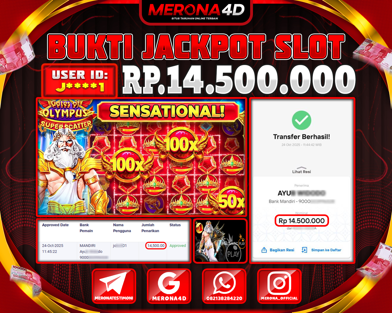 Selamat Kepada Member MERONA4D Jβ­‘οΏ½***οΏ½β­‘1 Telah Jackpot Di GATES OF OLYMPUS SUPER SCATTER