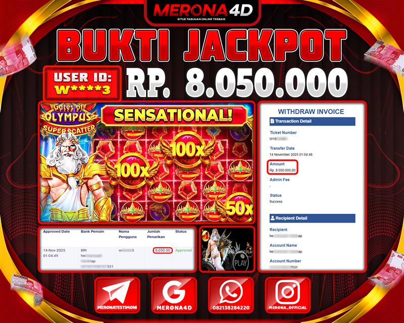 Selamat Kepada Member MERONA4D W*****3 Telah Jackpot Di GATES OF OLYMPUS SUPER SCATTER
