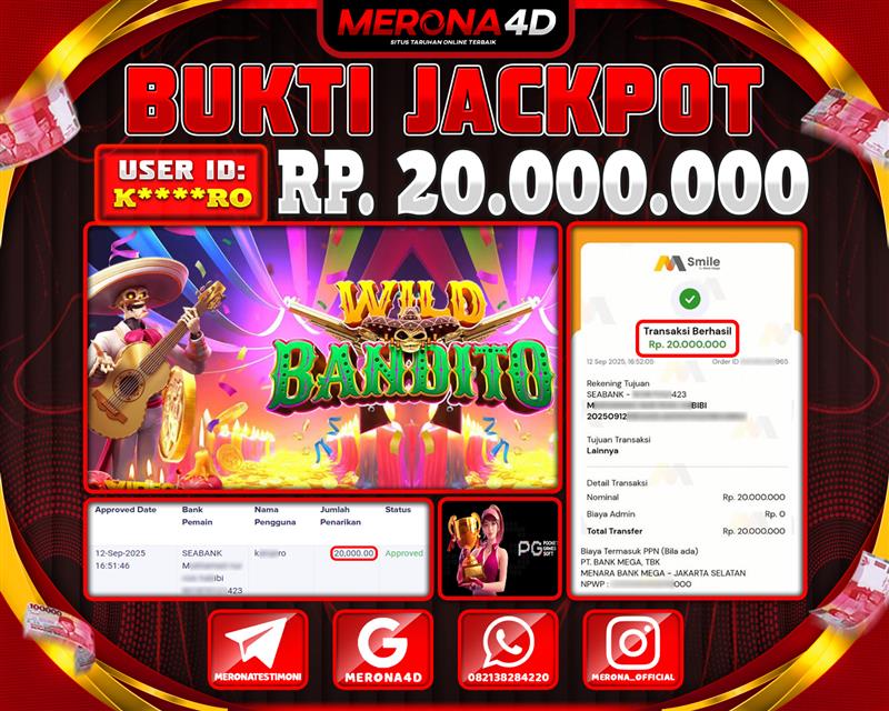 Selamat Kepada Member MERONA4D K*****O Telah Jackpot Di WILD BANDITO