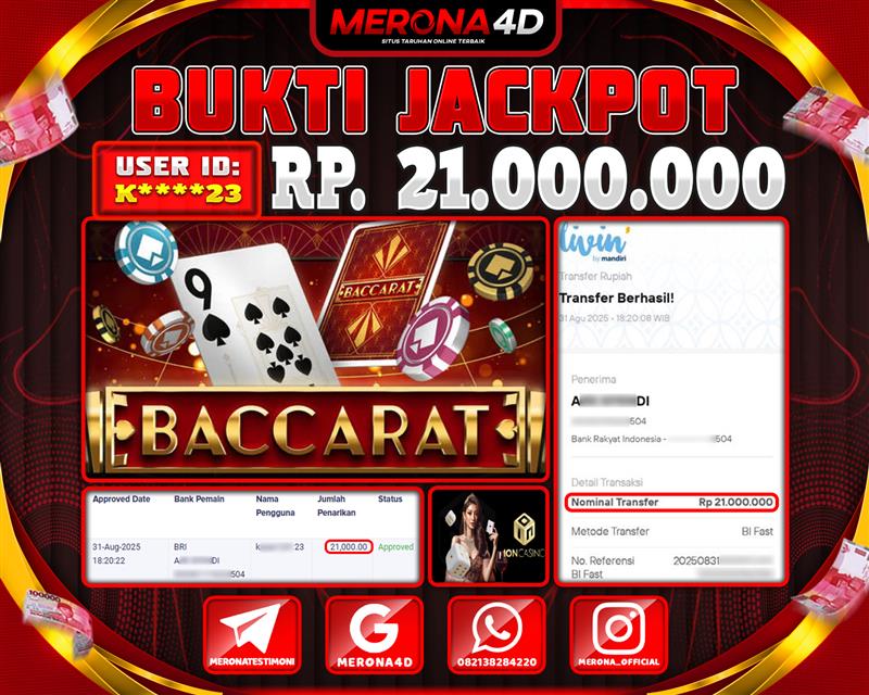 Selamat Kepada Member MERONA4D K*****23 Telah Jackpot Di BACCARAT