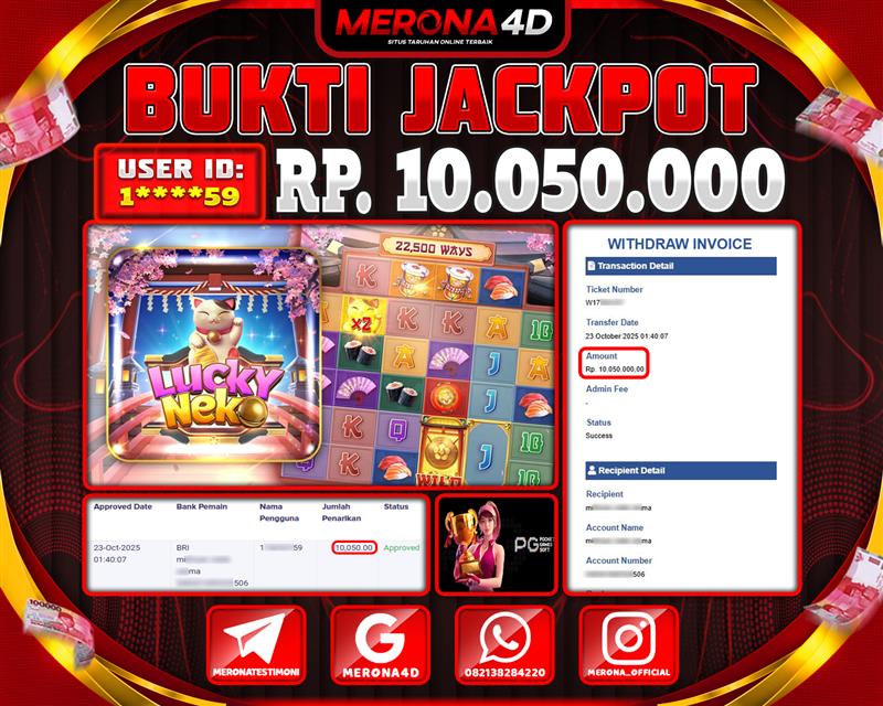 Selamat Kepada Member MERONA4D 1*****59 Telah Jackpot Di LUCKY NEKO