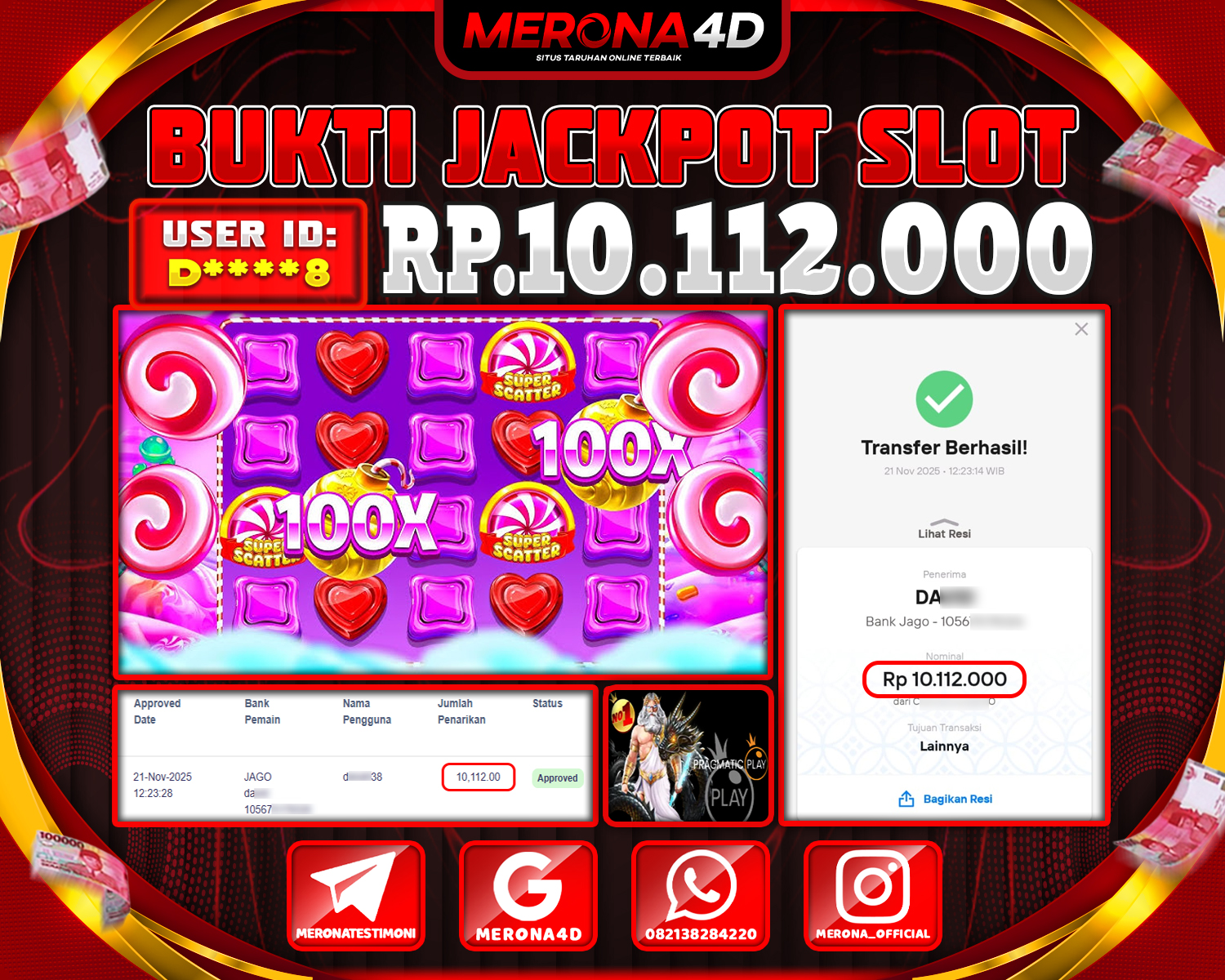 Ingin menang besar di game slot? MERONA4D menghadirkan ratusan slot dari provider ternama seperti Pragmatic Play, PG Soft, Habanero, dan lainnya. Nikmati fitur Buyspin, Free Spin, Scatter, dan Jackpot Progresif. Bonus harian dan event slot rutin siap menambah cuan Anda!