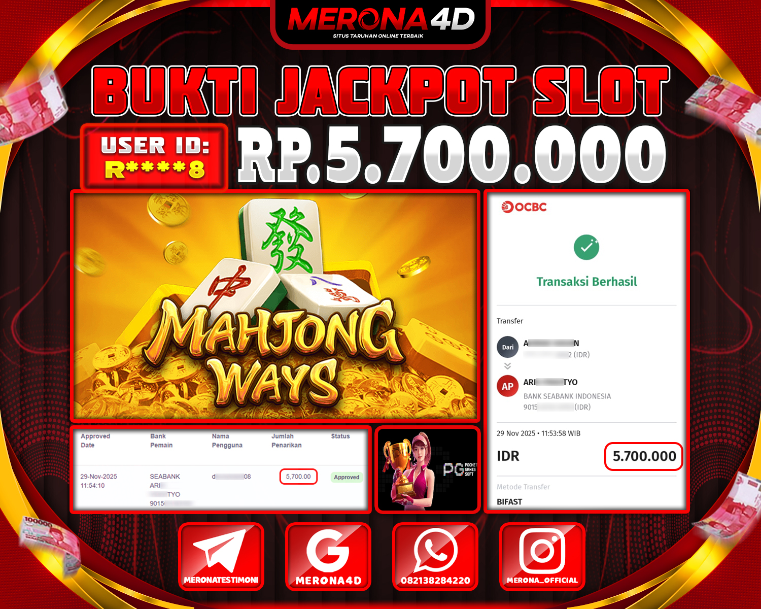 Selamat Kepada Member MERONA4D N****N Telah Jackpot Di MAHJONG WAYS