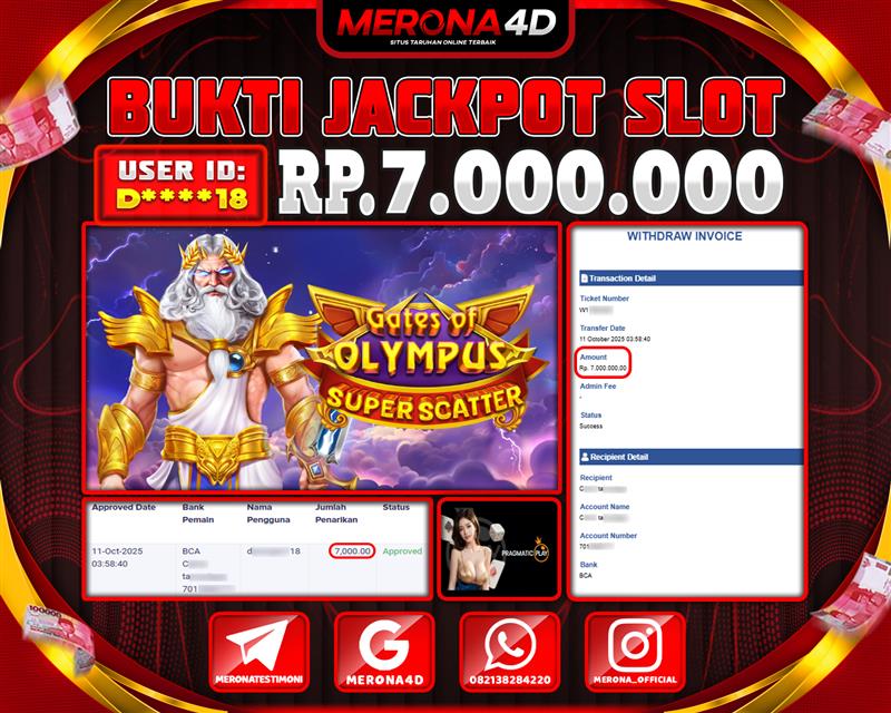 Selamat Kepada Member MERONA4D D*****18 Telah Jackpot Di GATES OF OLYMPUS SUPER SCATTER
