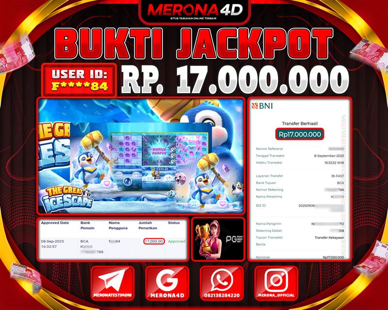 Selamat Kepada Member MERONA4D F*****84 Telah Jackpot Di THE GREAT ICESCAPE