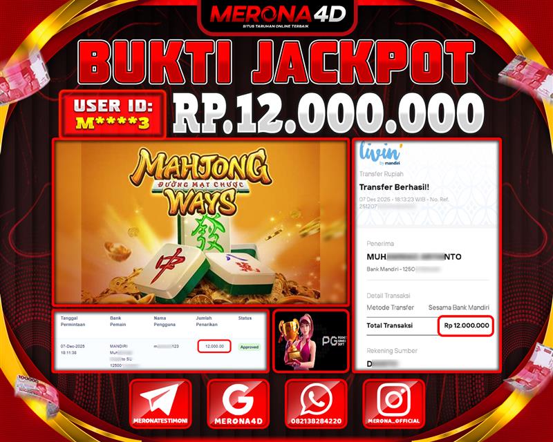 Selamat Kepada Member MERONA4D Nβ­‘οΏ½***οΏ½β­‘7 Telah Jackpot Di MAHJONG WAYS