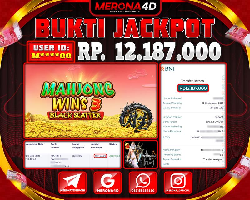 Selamat Kepada Member MERONA4D M*****0 Telah Jackpot Di MAHJONG WINS 3 – BLACK SCATTER