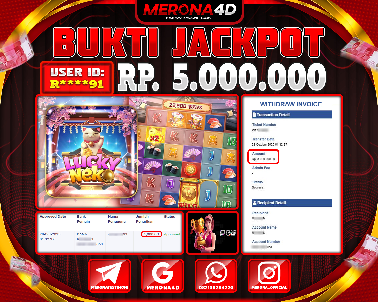 Selamat Kepada Member MERONA4D R*****1 Telah Jackpot Di LUCKY NEKO