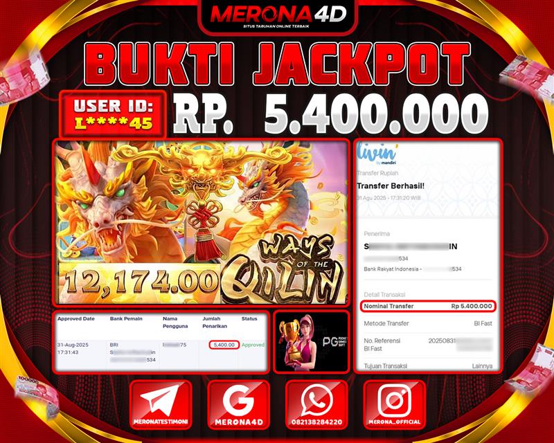 Selamat Kepada Member MERONA4D L*****45 Telah Jackpot Di WAYS OF THE QILIN