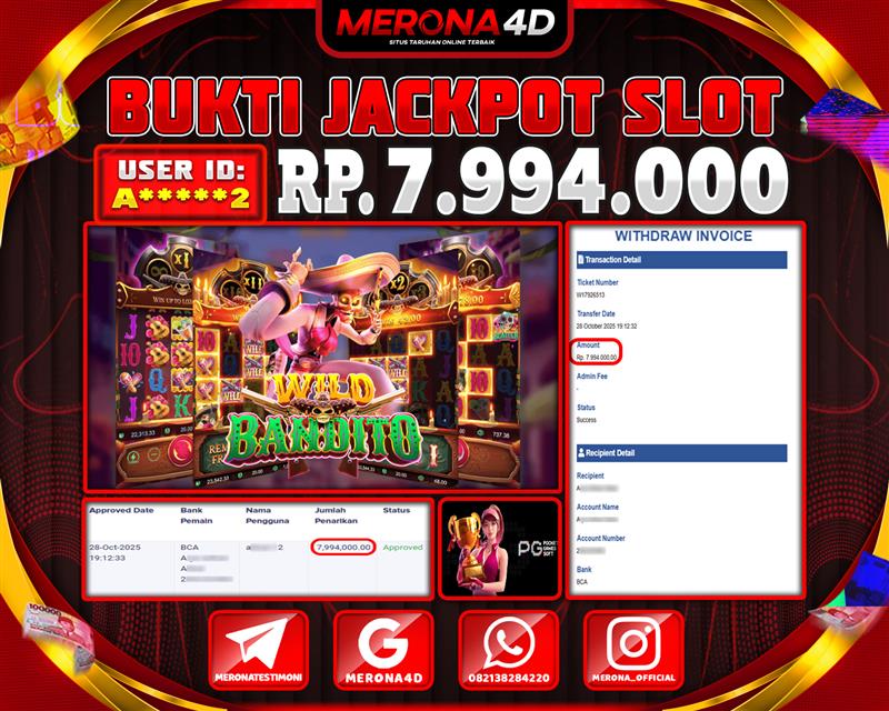 Selamat Kepada Member MERONA4D A*****2 Telah Jackpot Di WILD BANDITO