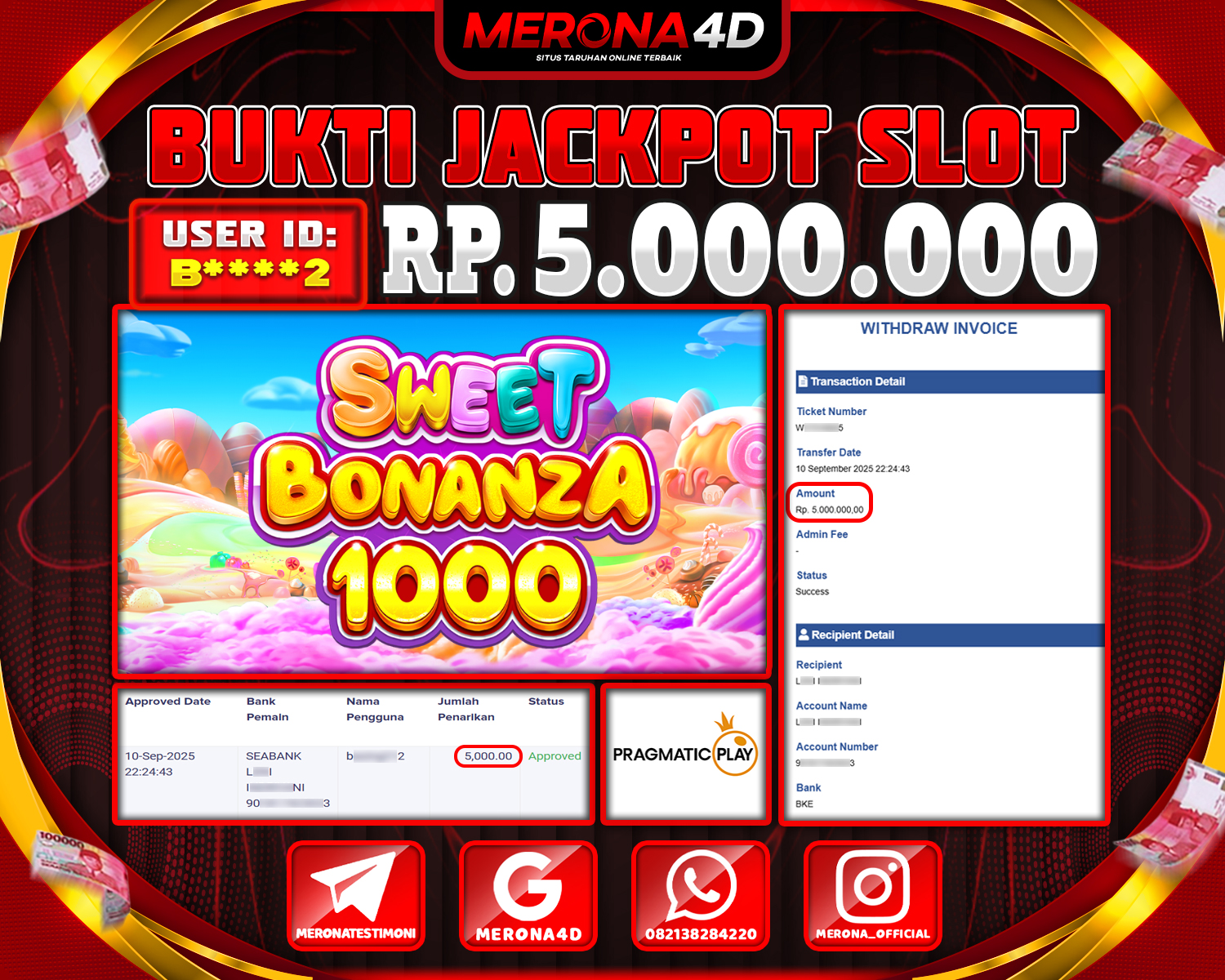 Selamat Kepada Member MERONA4D B****2 Telah Jackpot Di SWEET BONANZA 1000