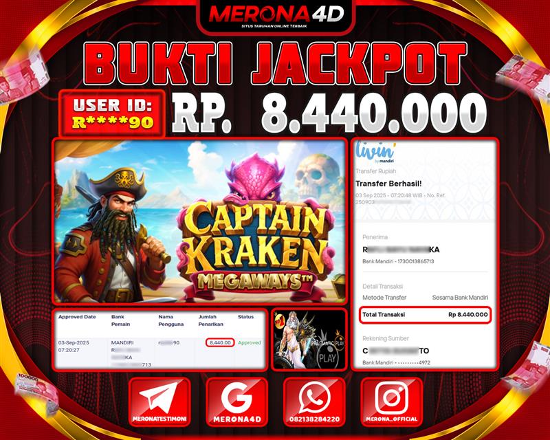 Selamat Kepada Member MERONA4D R*****90 Telah Jackpot Di CAPTAIN KRAKEN MEGAWAYS