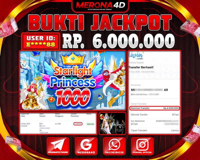 Selamat Kepada Member MERONA4D E*****88 Telah Jackpot Di STARLIGHT PRINCESS