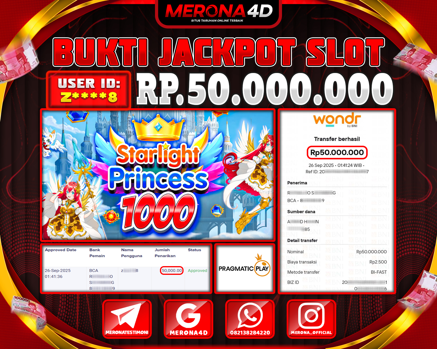 Selamat Kepada Member MERONA4D Z****8 Telah Jackpot Di STARLIGHT PRINCESS 1000