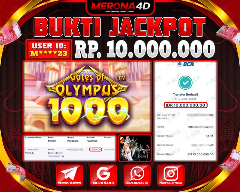 Selamat Kepada Member MERONA4D M*****23 Telah Jackpot Di GATES OF OLYMPUS 1000