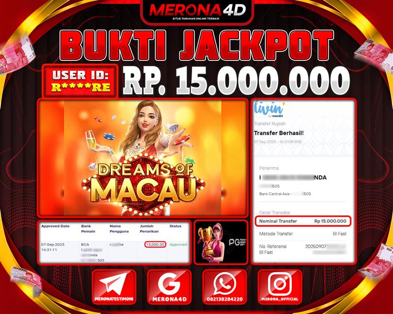 Selamat Kepada Member MERONA4D R*****RE Telah Jackpot Di DREAMS OF MACAU
