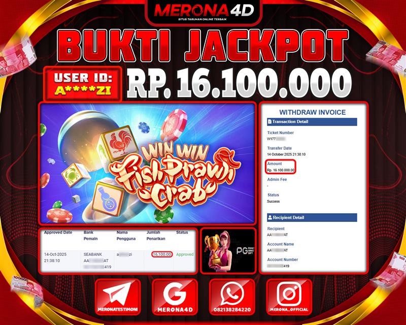 Selamat Kepada Member MERONA4D A*****Z1 Telah Jackpot Di WIN WIN FISH PRAWN CRAB