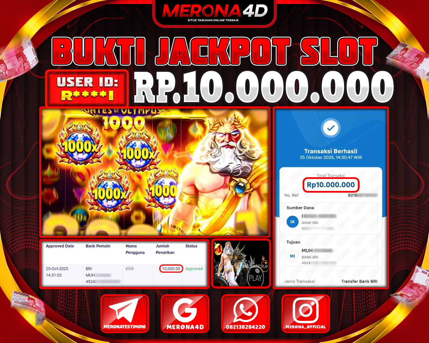 Selamat Kepada Member MERONA4D K****3 Telah Jackpot Di GATES OF OLYMPUS 1000