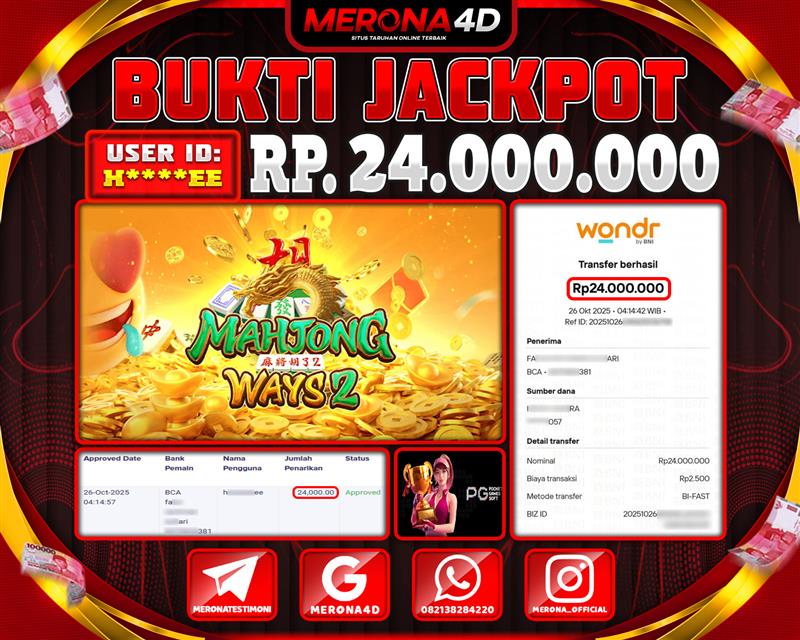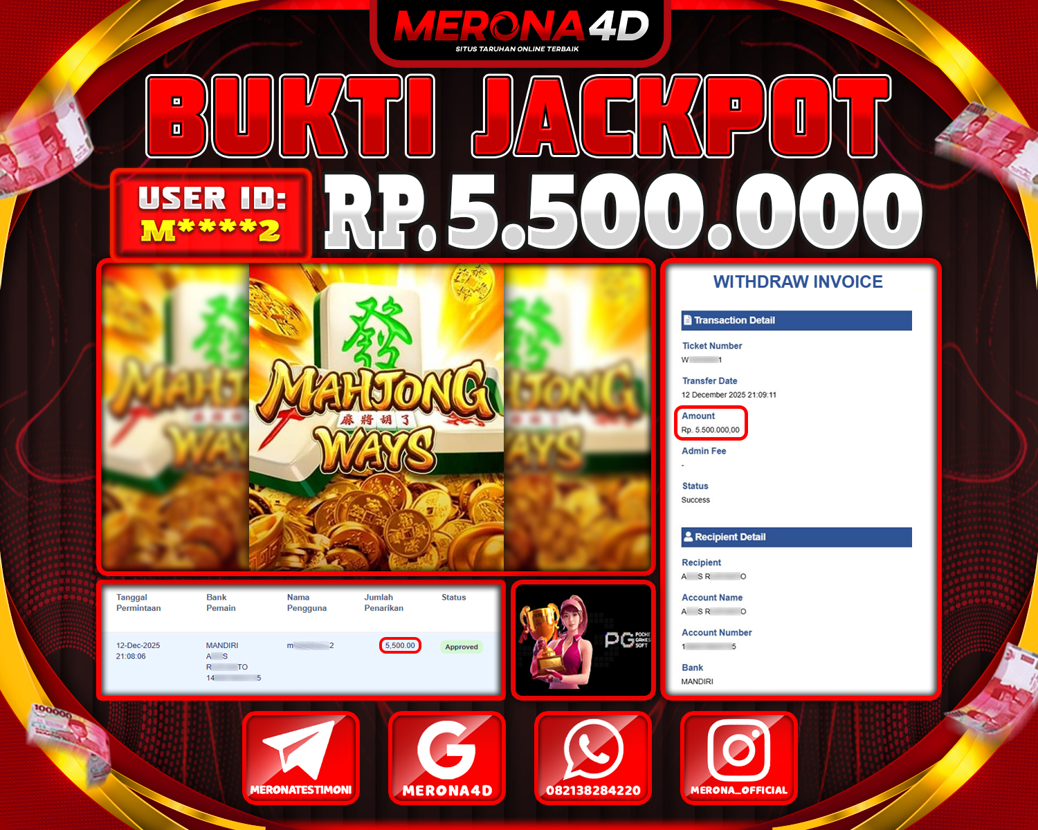 Selamat Kepada Member MERONA4D M****2 Telah Jackpot Di MAHJONG WAYS 1