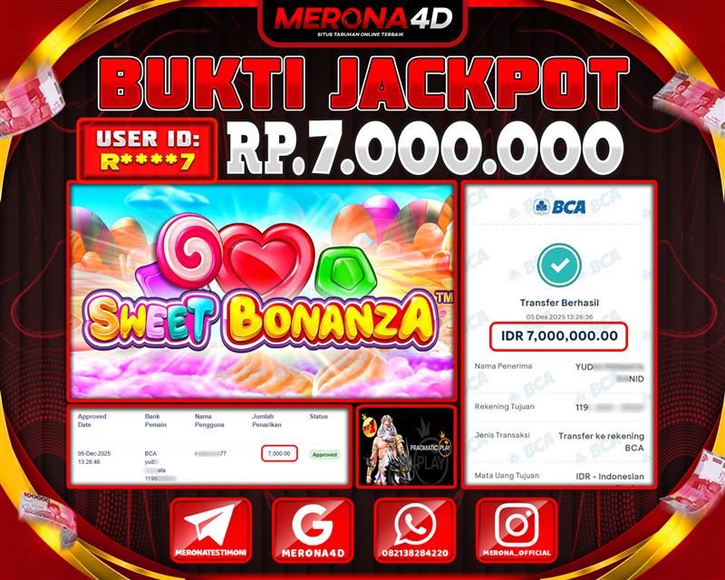 Selamat Kepada Member MERONA4D D****8 Telah Jackpot Di SWEET BONANZA SUPER