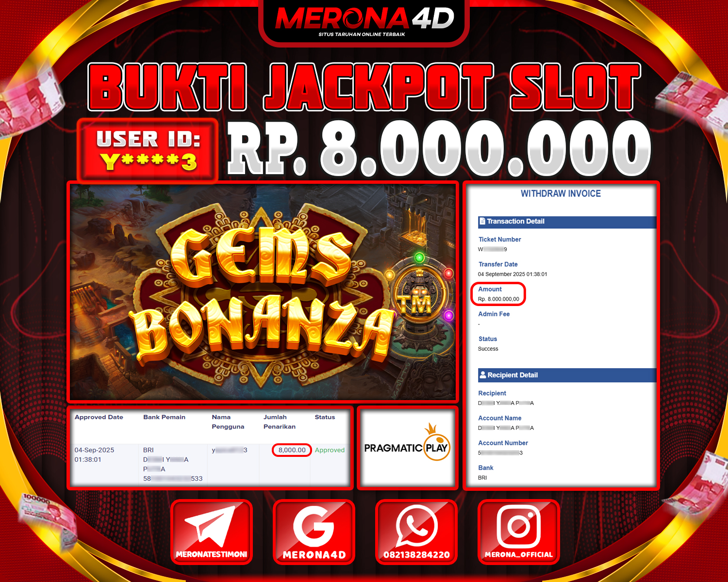 Selamat Kepada Member MERONA4D Y****3 Telah Jackpot Di GEMS BONANZA