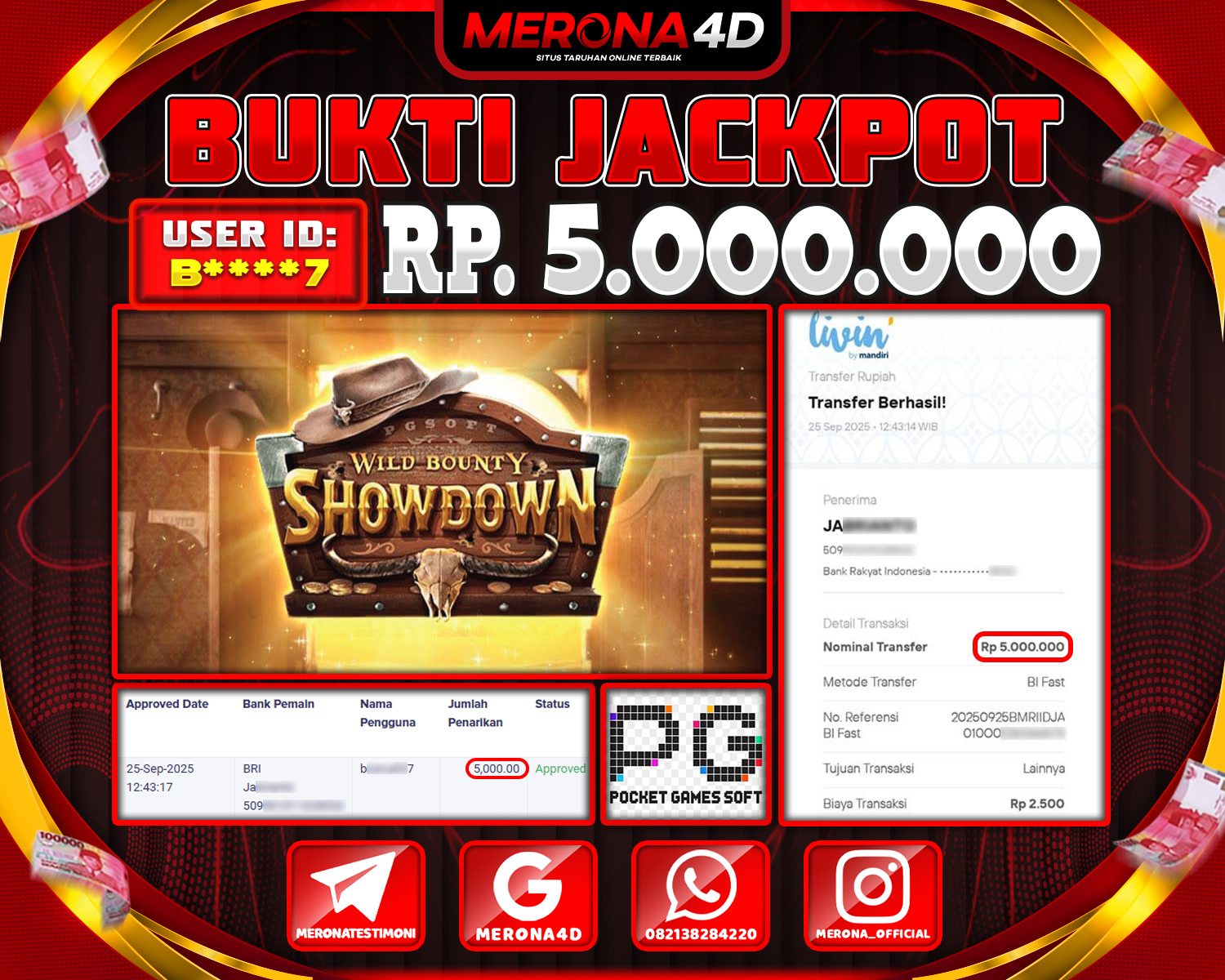 Selamat Kepada Member MERONA4D B**** Telah Jackpot Di WILD BOUNTY SHOWDOWN
