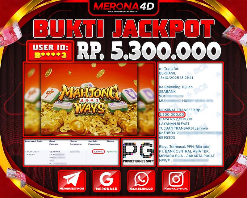 Selamat Kepada Member MERONA4D Bβ­‘οΏ½***οΏ½β­‘3 Telah Jackpot Di MAHJONG WAYS 1