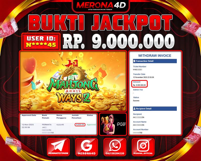 Selamat Kepada Member MERONA4D N*****45 Telah Jackpot Di MAHJONG WAYS 2