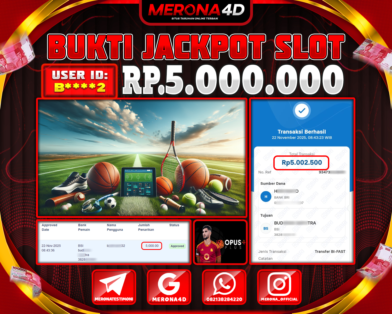 Selamat Kepada Member MERONA4D B*****2 Telah Jackpot Di SPORTBOOKS